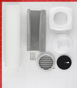 Внутри воздуховода установлен фильтр, задерживающий мелкие частицы пыли и теплошумоизолирующий элемент, который не позволяет промерзать стене в помещении, где установлен приточный клапан.