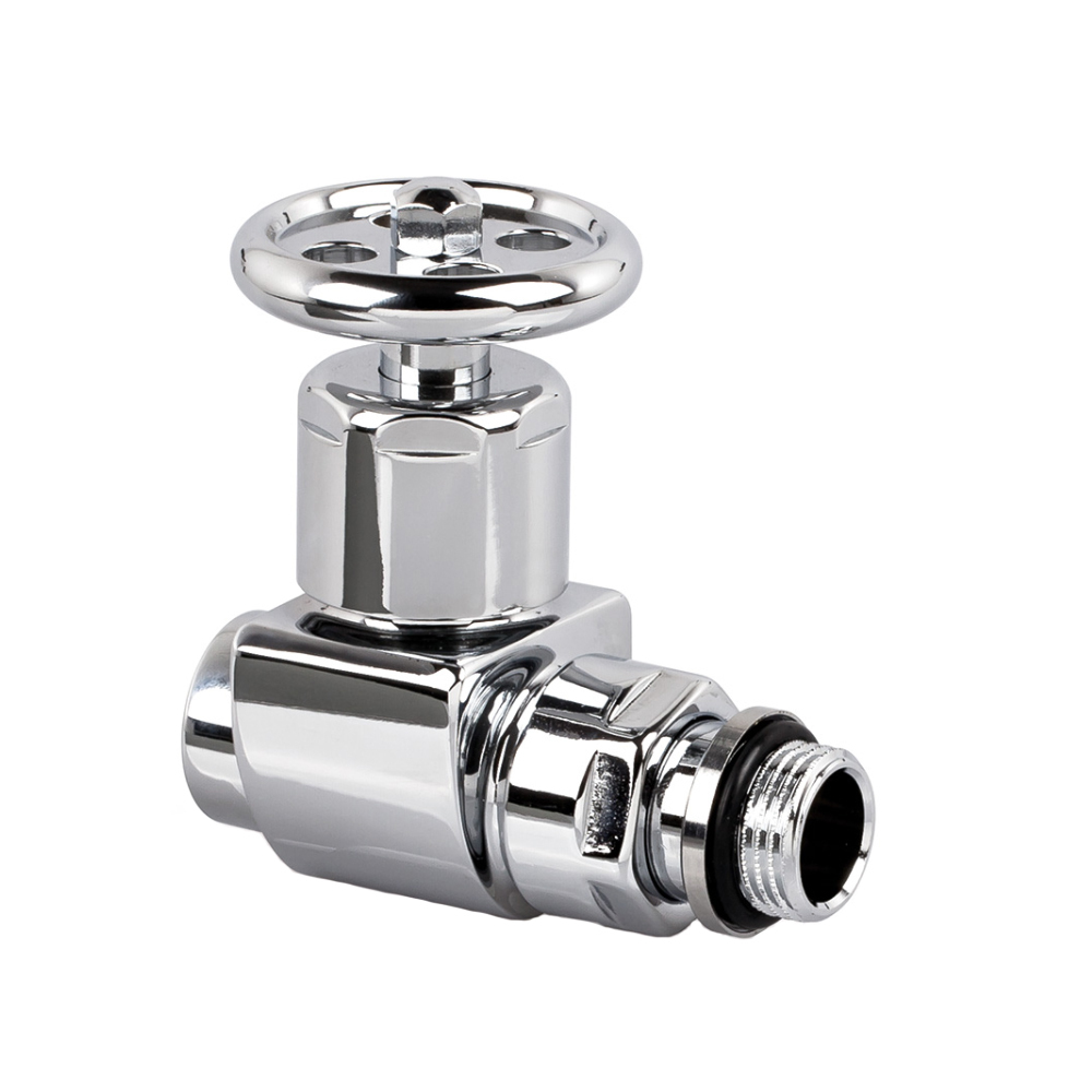 Вентиль SR Rubinetterie дизайн серия «Prestige & Minimal» прямой, ручной регулировки, преобразуемый в термостатический, с механизмом предварительной настройки, соединение для железной трубы, хвостовик с герметичной прокладкой.