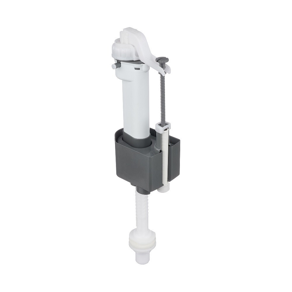 Компактный и универсальный наполнительный клапан подходит для большинства смывных бачков с нижним подводом воды на 1/2 дюйма. Кожух поплавка гарантирует работу даже при касании стенок бачка. Клапан выполнен из пластика и оснащен функцией «отложенного открытия» — кран открывается только после завершения смыва. Гидравлическое закрытие (без гидравлического удара), малошумный (уровень шума менее 20 дБ), уровень набора воды регулируется винтом. Диапазон функции давления — от 0,5 до 12 бар, расход 0,14 л/с при давлении 3 бара (работа при низком давлении с фильтром). Телескопическая трубка позволяет регулировать высоту клапана от 239 до 347 мм.