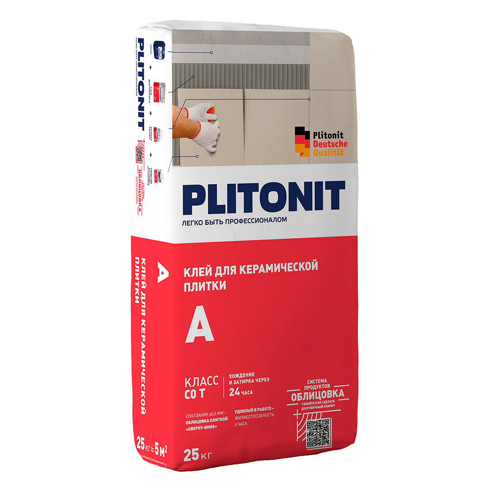 Клей для плитки Plitonit А универсальный серый класс C0 T 25 кг