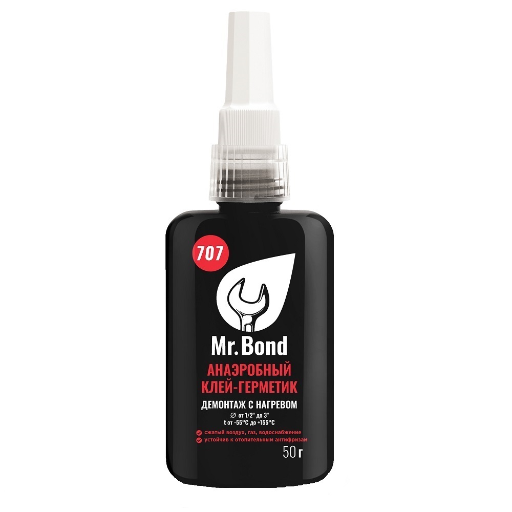 Анаэробный однокомпонентный клей-герметик Qs Mr.bond 707 , предназначен для герметизации металлических резьбовых соединений согласно стандарту DIN для воды, сжатого воздуха, газа, бензина, сжиженного газа, для частного и промышленного использования. Клей-герметик самопроизвольно и быстро полимеризуется в бескислородной среде между склеиваемыми поверхностями металла с небольшим зазором в резьбе. Qs Mr.bond 707 соответствует EN 751-1 для газа и горячей воды. Высокопрочная фиксация, подходит для герметизации мелкого шага резьбы. Замена твердым уплотнительным материалам, создает гибкие прочные пленки. Герметизация систем, где рабочей средой выступает вода, воздух, газ, масло и другие растворы химических веществ. Соответствие DVGW для герметизации воздуха, газа, воды.