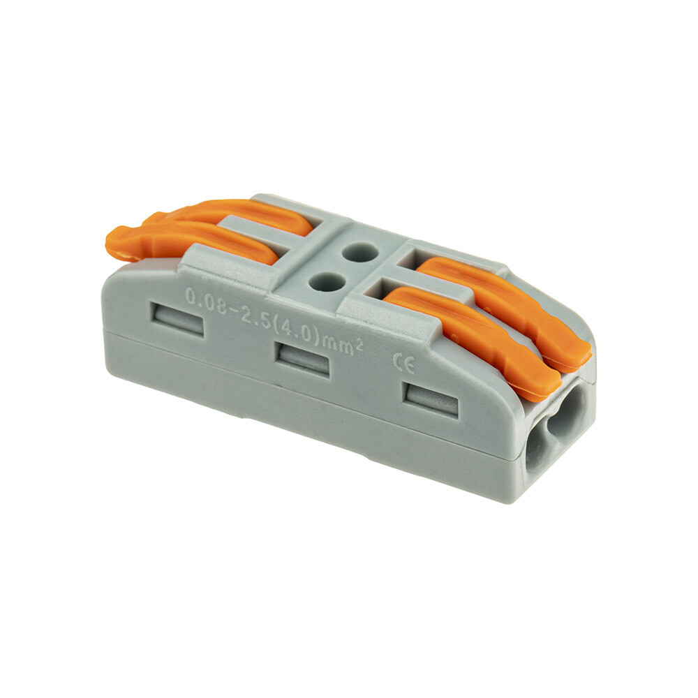 Cоединительные монтажные клеммы Duwi СМК 422х2 являются полным аналогом клемм Wago/Ваго. 2-х контактные клеммы подходят для соединения моножильных и многожильных проводов, защищая их от повреждения и исключая возможность замыкания. Моножильные провода достаточно только зачистить, а многожильные — нужно обжать наконечником для наилучшего соединения контактов. Рычажки предназначены для надежного зажима кабелей. Клеммы используются в целях переменного и постоянного тока с напряжением до 400В. Номинальный ток: 32 А. Прозрачный корпус позволяет отследить качество соединения. Клеммы обладают следующими преимуществами: простое и быстрое подключение, монтаж без инструментов, многократное использование, улучшенная токовая проводимость зажимов, подходят для жесткого и гибкого кабеля, а также для многожильных кабелей. Сечение жесткого проводника 4 мм2. Клеммы Duwi выполнены из негорючих материалов — термостойкий пластик, а специальные пазы в корпусе исключают возможность случайного отсоединения проводников. Рабочая температура составляет от -25С до +85С. Набор клемм из 5 штук упакован в пакет с многоразовым замком, который легко открыть и закрыть. Это позволит сохранить порядок при ремонтных работах и при хранении клемм.