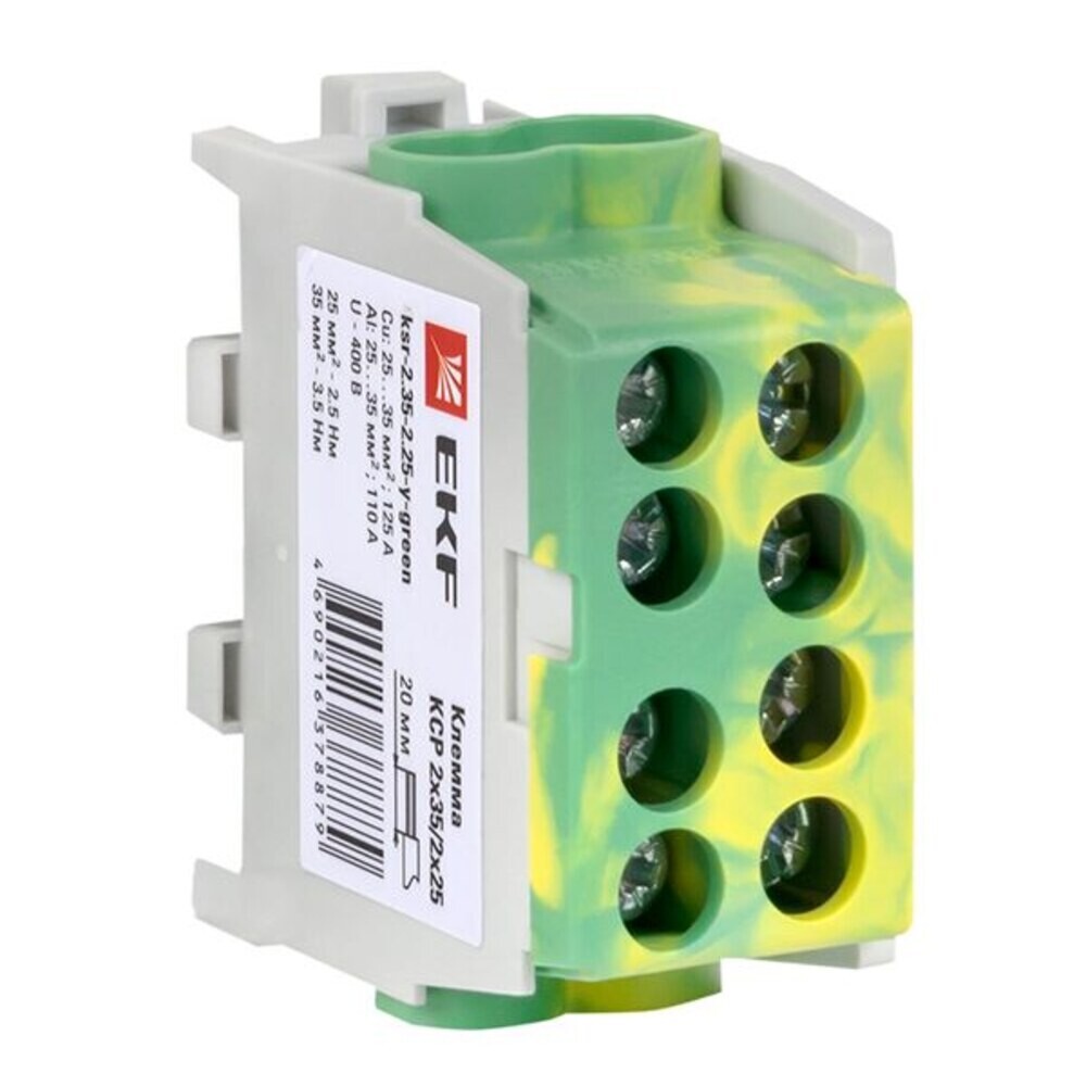Клемма на 4 провода EKF PROxima 2,5-35 кв.мм с двойным винтом желто-зеленая (ksr-2.35-2.25-y-green)