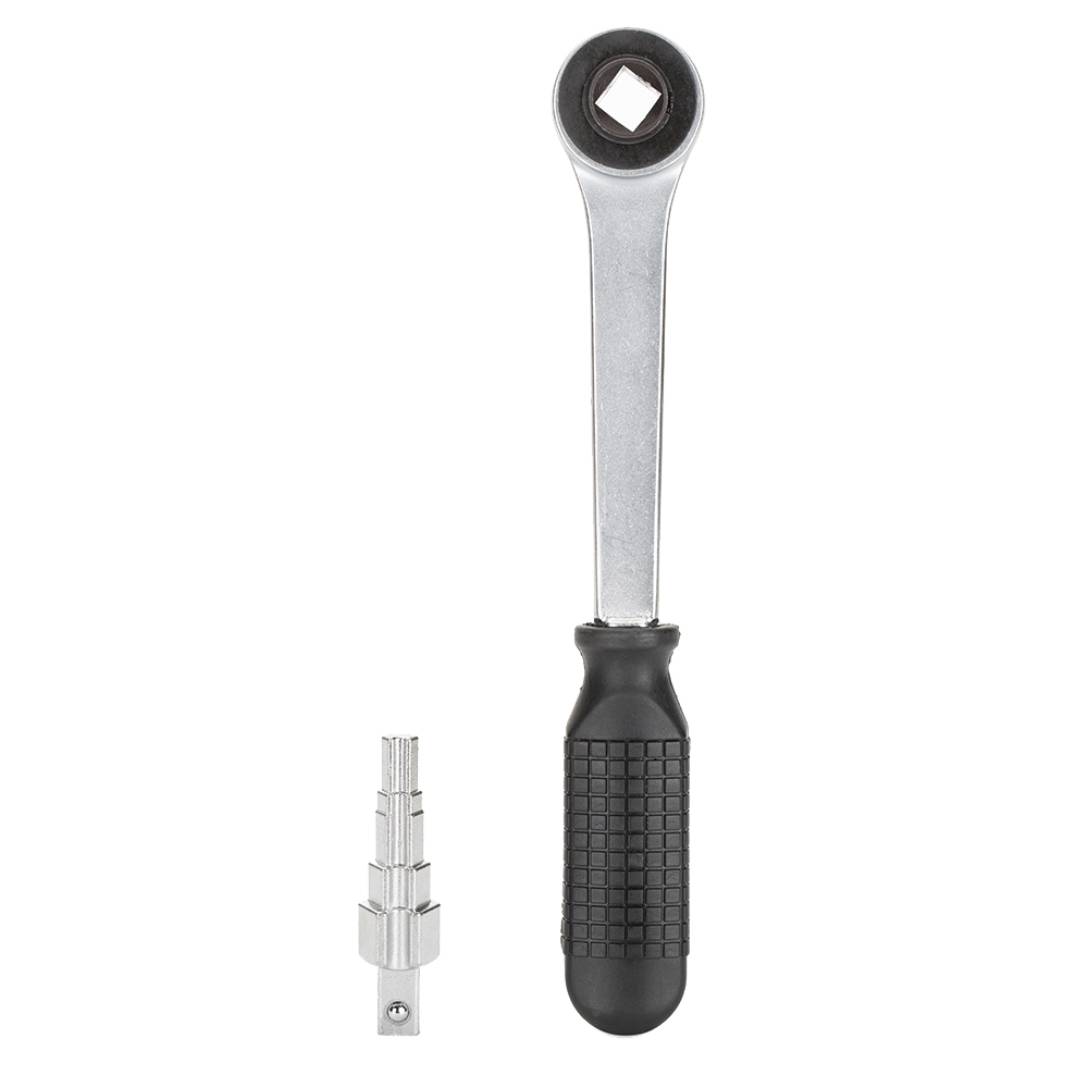 Предназначен для монтажа резьбовых стальных, чугунных, латунных и бронзовых резьбовых фитингов типа «американка». Ключ универсальный ступенчатый для американок с размерами 3/8″ -7/16″- 1/2″ — 5/8″ — 13/16″ с трещоточной рукояткой. Головку ключа можно вставлять с разных сторон (для откручивания и закручивания).