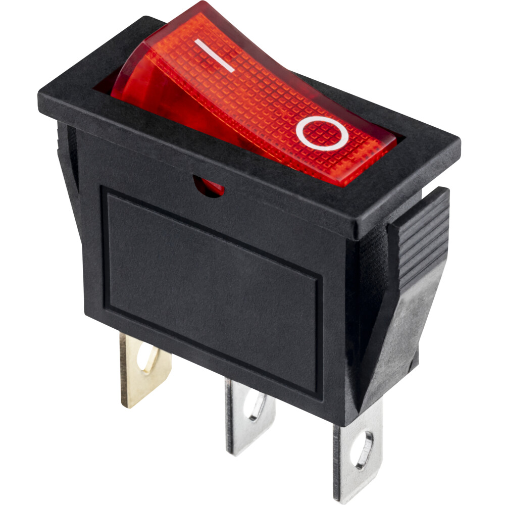 Выключатель клавишный On-Off красный с подсветкой предназначен для коммутации электрических цепей переменного тока напряжением до 250В.
