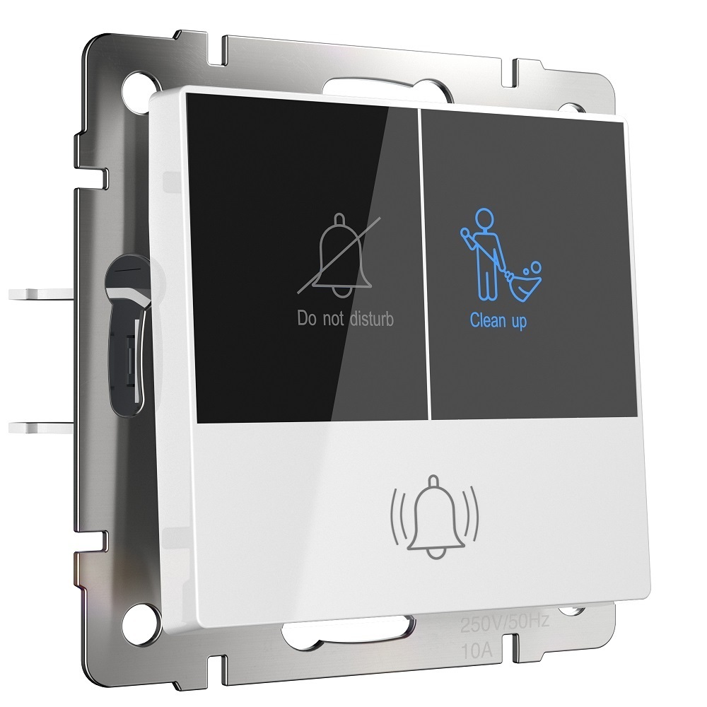 Кнопка звонка для отелей – это современный и удобный в использовании механизм с системой индикации. Кнопка вызова горничной передаёт сигнал персоналу на дверной звонок с индикатором, находящийся снаружи номера. Включение гостем режима «не беспокоить» также отображается на индикаторе — и отключает дверной звонок. Кроме того, механизм может использоваться в офисах и медицинских учреждениях.
