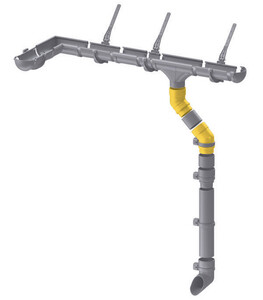 Предназначено для обеспечения перехода от воронки к трубе, а также для обхода архитектурных элементов фасада. Элементы просто соединяются друг с другом и легко защелкиваются. При этом каждое соединение трубы или желоба с фитингом являются компенсатором температурного расширения/сжатия.