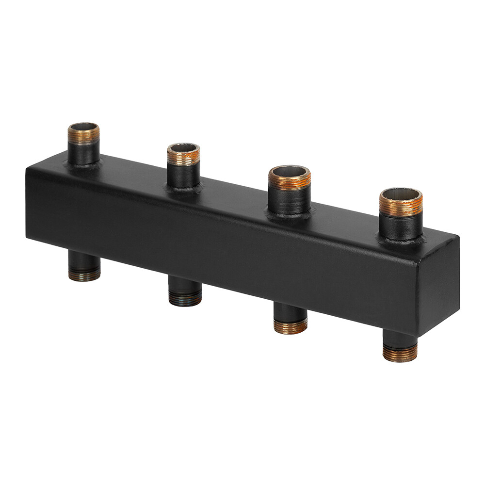 С помощью данного коллектора происходит эффективное теплораспределение на все необходимые отопительные контуры: горячее водоснабжение, теплый пол и т.п.