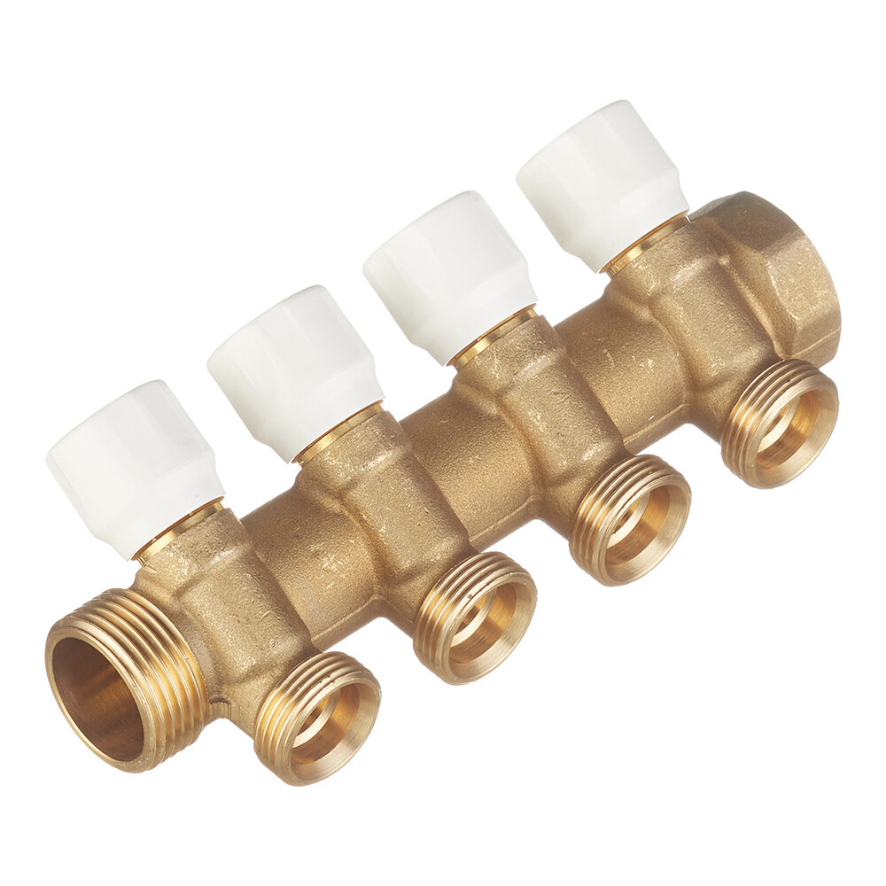 Коллектор Tece 1 ВР(г) х 4 выхода 3/4 НР(ш) ЕК х 1 НР(ш) с запорными вентилями (8730040)