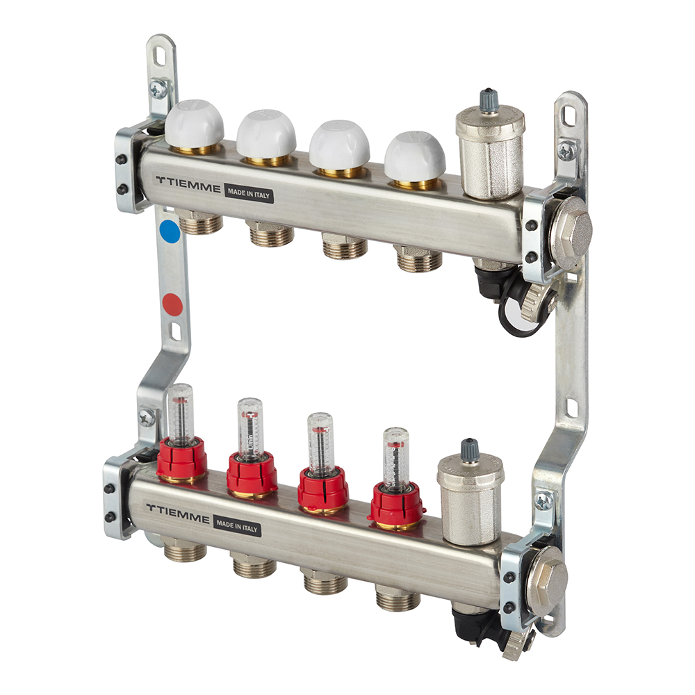 Коллекторная группа с расходомерами Tiemme 1 ВР(г) х 4 выхода 3/4 НР(ш) ЕК х 1 ВР(г)