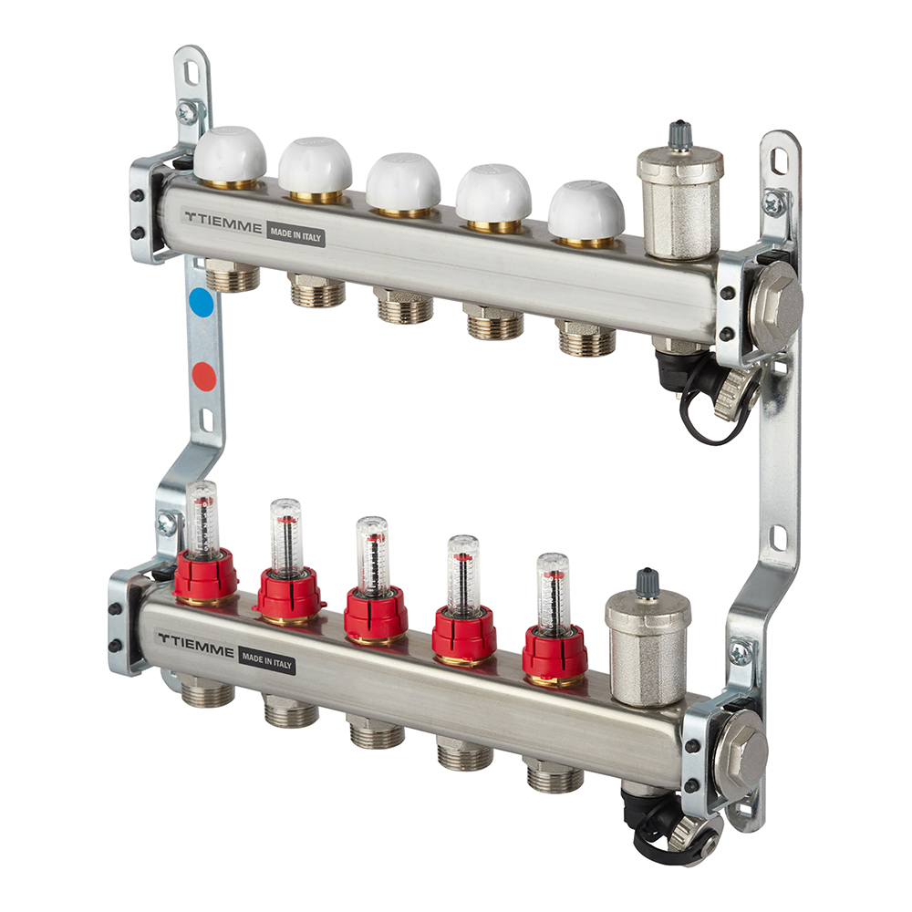 Коллекторная группа с расходомерами Tiemme 1 ВР(г) х 5 выходов 3/4 НР(ш) ЕК х 1 ВР(г)