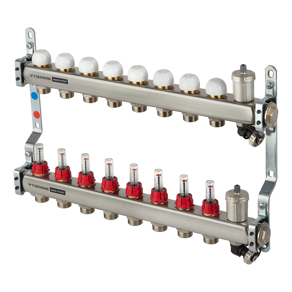 Коллекторная группа с расходомерами Tiemme 1 ВР(г) х 8 выходов 3/4 НР(ш) ЕК х 1 ВР(г)