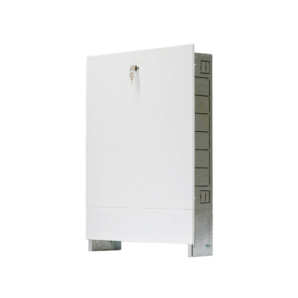 Корпус шкафа выполнен из высококачественной оцинкованной стали толщиной 1 мм. Лицевые панели окрашены порошковой краской RAL 9016 с предварительным нанесением фосфатной пленки для придания антикоррозионных свойств изделию. В боковых стенках корпуса шкафа выполнена перфорация, сегменты которой удаляются в любом удобном месте для подсоединения трубопроводов. Внутри шкафа установлены универсальные профильные крепления, позволяющие располагать оборудование по всей высоте и ширине шкафа. Шкафы имеют легкоснимаемую наружную коробку, регулировку по высоте и глубине. Надежные крепления к полу с помощью отверстий в выдвижных ножках. Удобная фиксация шкафа в стенной нише с помощью отгибных фиксаторов. Шкафы Primoclima обеспечивают быстрый доступ для инженерного обслуживания коллекторных узлов. Применяется для монтажа в системах отопления и водоснабжения.