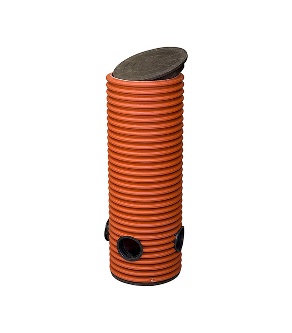 Колодец дренажный смотровой 368/315х1000 мм с тремя отводами 110 мм с дном и крышкой