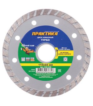 Диск алмазный универсальный Практика 115х22,2х2,4 мм турбо сухой рез (036-346)
