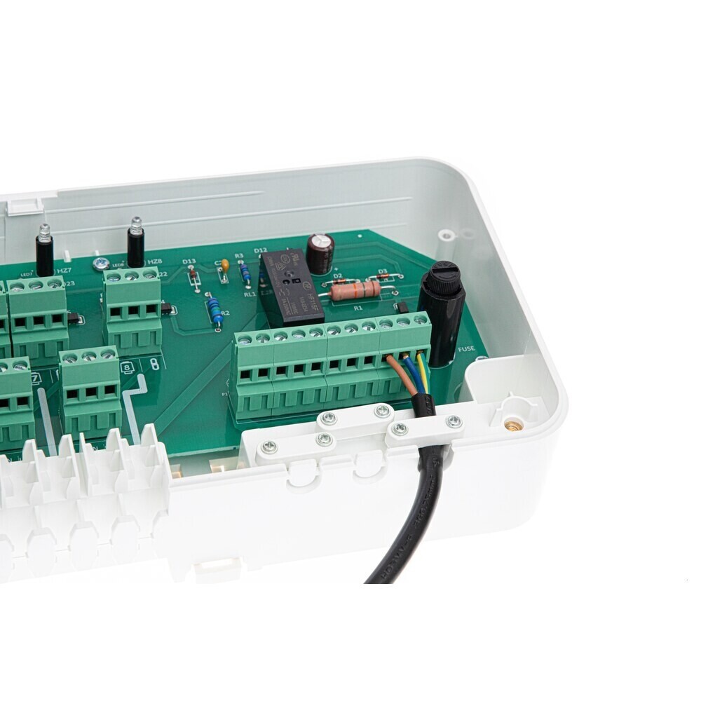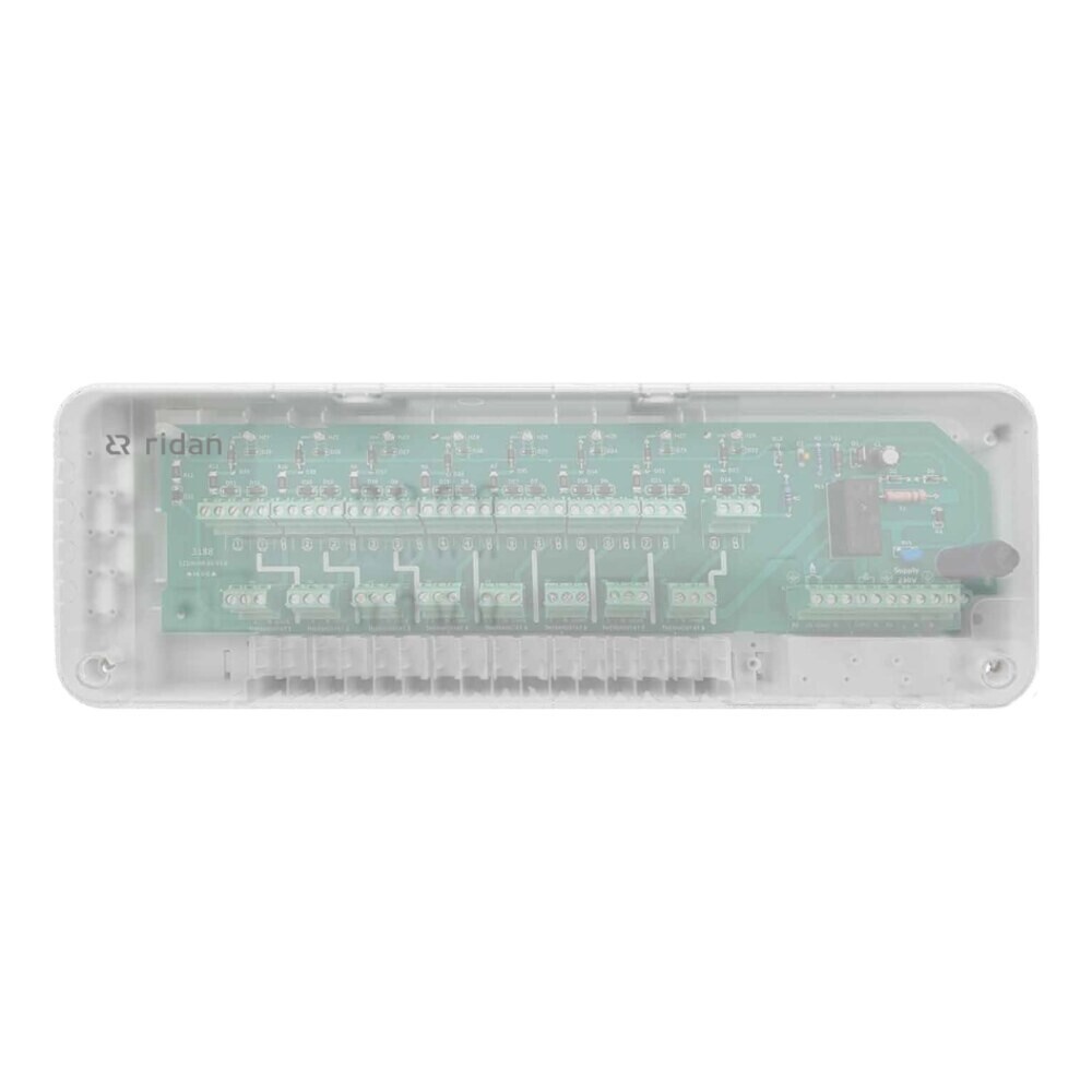 Коммутационная панель Ридан WD 230V – коммутационное устройство, предназначенное для использования в системах водяного отопления или водяных теплых полов с электронными термостатами и термоэлектрическими приводами с напряжением питания 230 В. Она позволяет подключить до 14 приводов и до 8 термостатов.