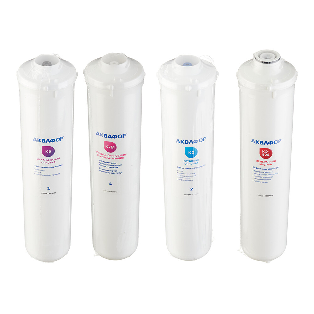 Комплект картриджей для фильтра Аквафор К5-К2-КО-50S-К7М для обратного осмоса