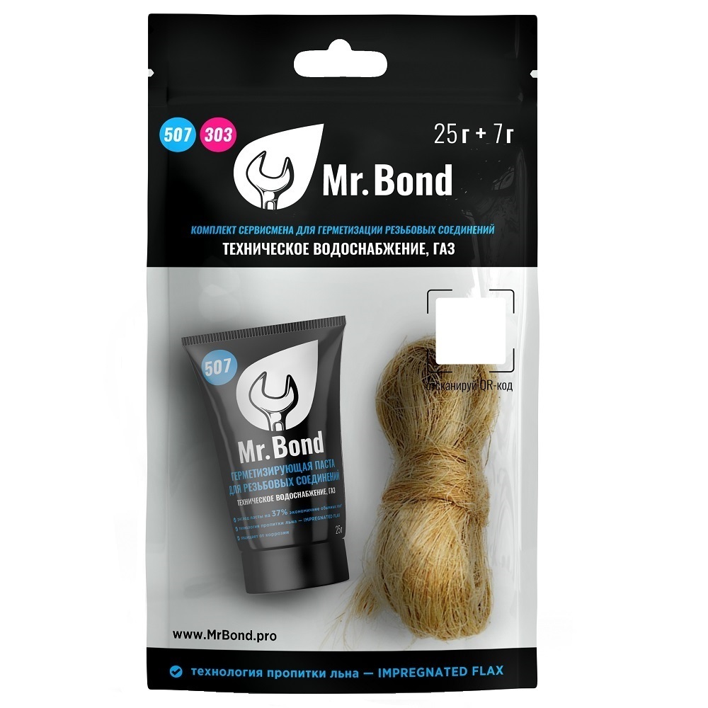 Комплекты сервисмена QuickSpacer Mr.Bond 507 и QuickSpacer Mr.Bond 505 подобраны с учетом совместного расхода льна и пасты для рационального использования и работ без остатков лишних материалов. Вы обеспечиваете 100% герметичность соединения.