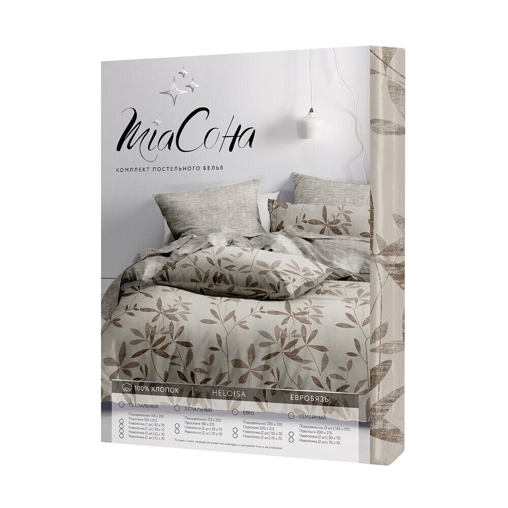 Комплектация: Наволочки — 2 шт., простынь — 1 шт., пододеяльник — 1 шт.