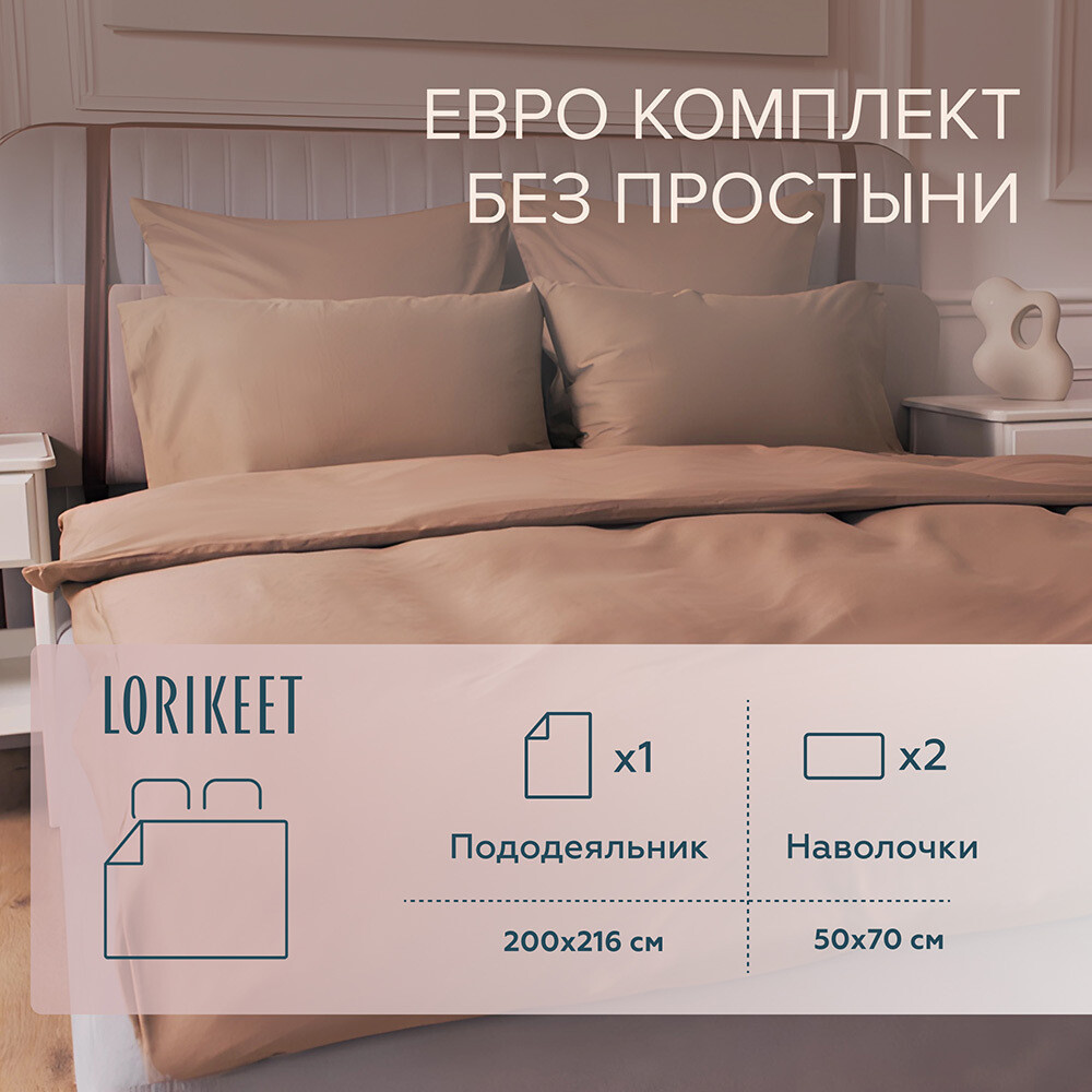Комплект постельного белья Евро сатин Lorikeet Solo латте без простыни
