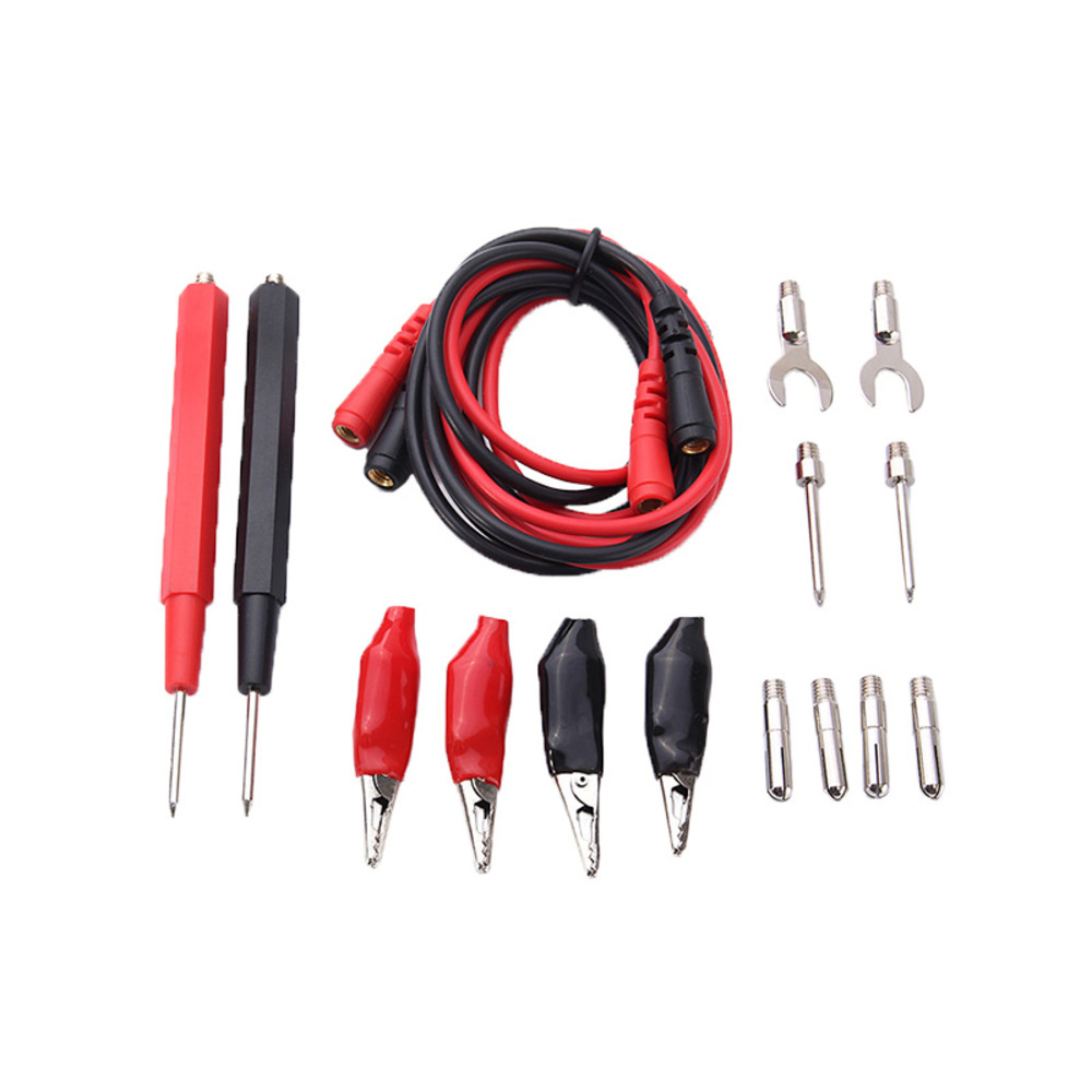 Комплектация: Провод для щупов — красный 1 шт., черный 1 шт., щупы — 2 шт., иглы — 2 шт., «вилки» — 2 шт., «банан» — 4 шт., «крокодил» — 4 шт.
