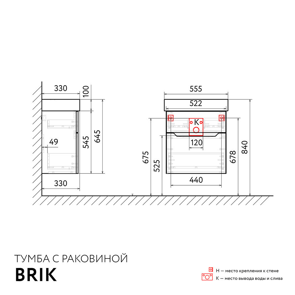 Тумба с раковиной из коллекции Brik разработана для самых компактных ванных комнат. Эргономичная тумба из МДФ с двумя вместительными ящиками имеет глубину 33 см. Удобные и просторные выдвижные ящики оснащены системой плавного закрывания. Авторский дизайн раковины со смесителем на углу обеспечивает удобство в использовании и экономит пространство.