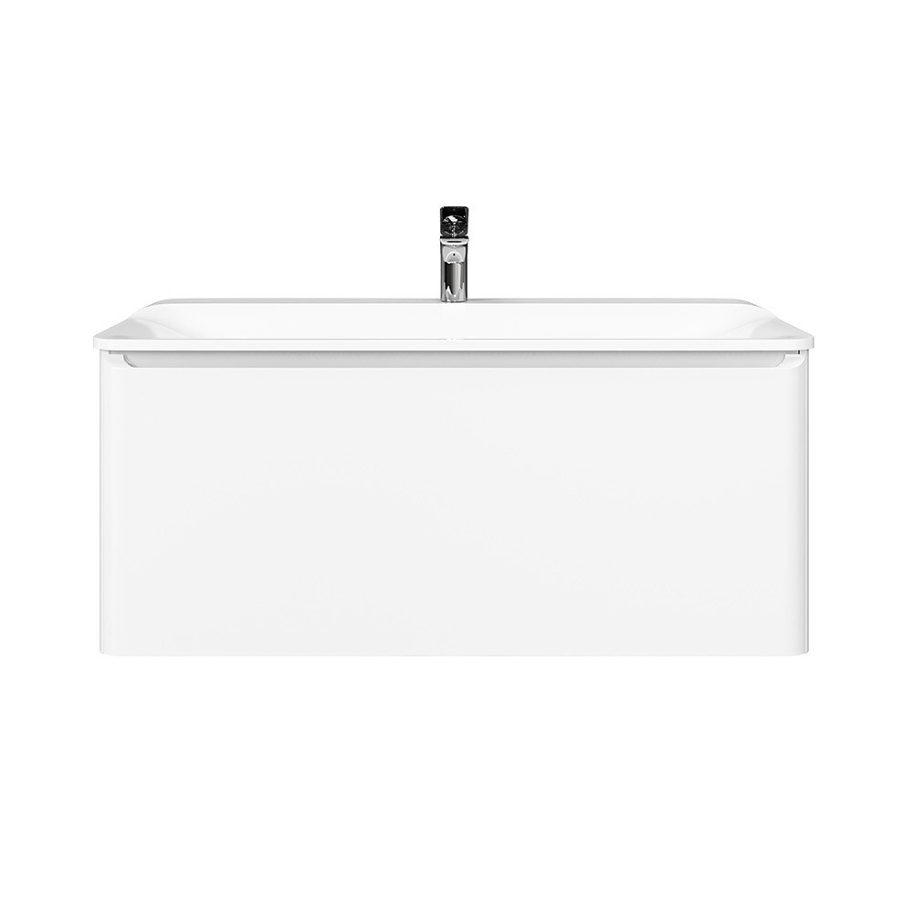 Тумба с раковиной из коллекции Welto бренда Raval – это сочетание практичности и минималистичного дизайна. Компактный выдвижной ящик освобождает пространство под тумбой для дополнительного использования. Плавное скругление углов и интегрированные ручки делают комплект максимально безопасным. Полноразмерная вкладная раковина из литьевого мрамора проста в уходе и устойчива к загрязнениям. Фасады тумбы изготовлены из МДФ и покрыты глянцевой пленкой ПВХ.