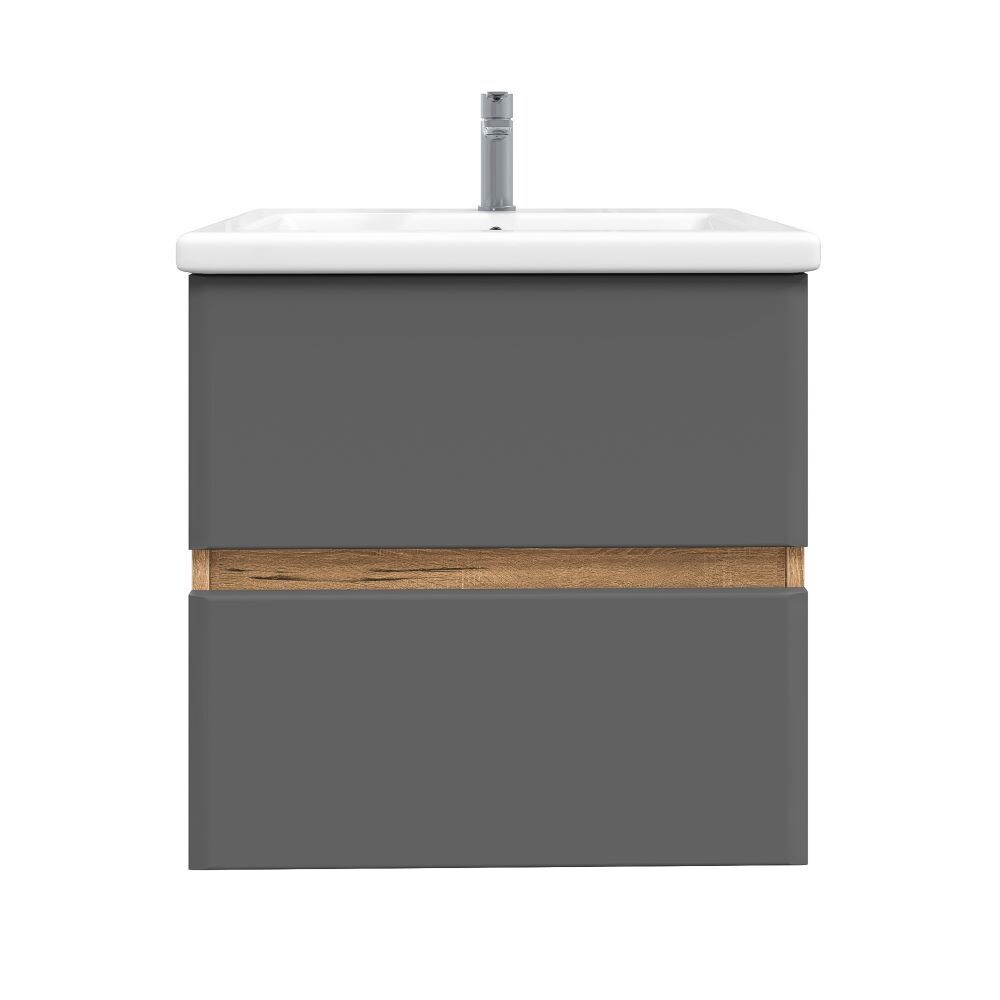 Комплект тумба с раковиной Sanstar Graffa 50 см подвесная дуб вотан/графит софт (450.1-1.4.1.ККОМ)