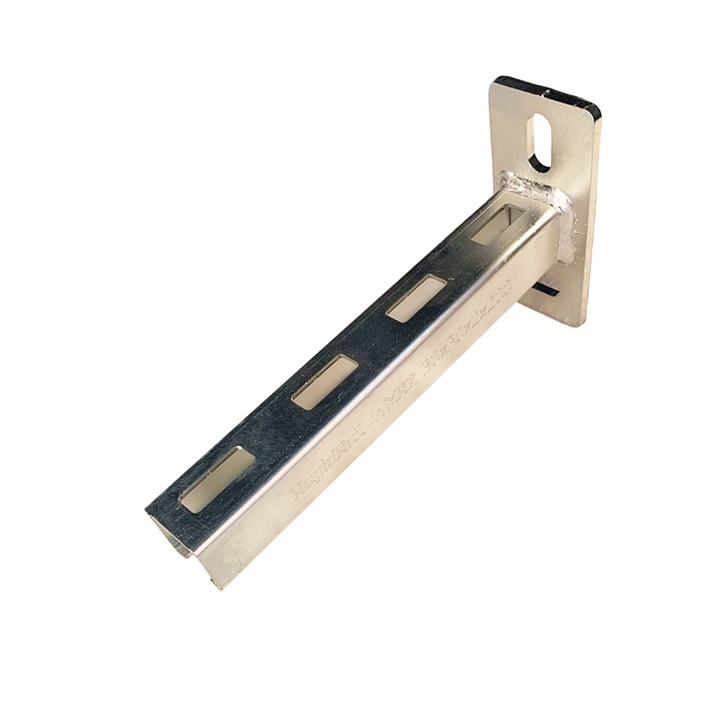 Консоль подходит для монтажа к перекрытиям. Для удобства монтажа крепёжные отверстия размещены под углом 90″. Подходит для монтажа внутри и снаружи зданий.