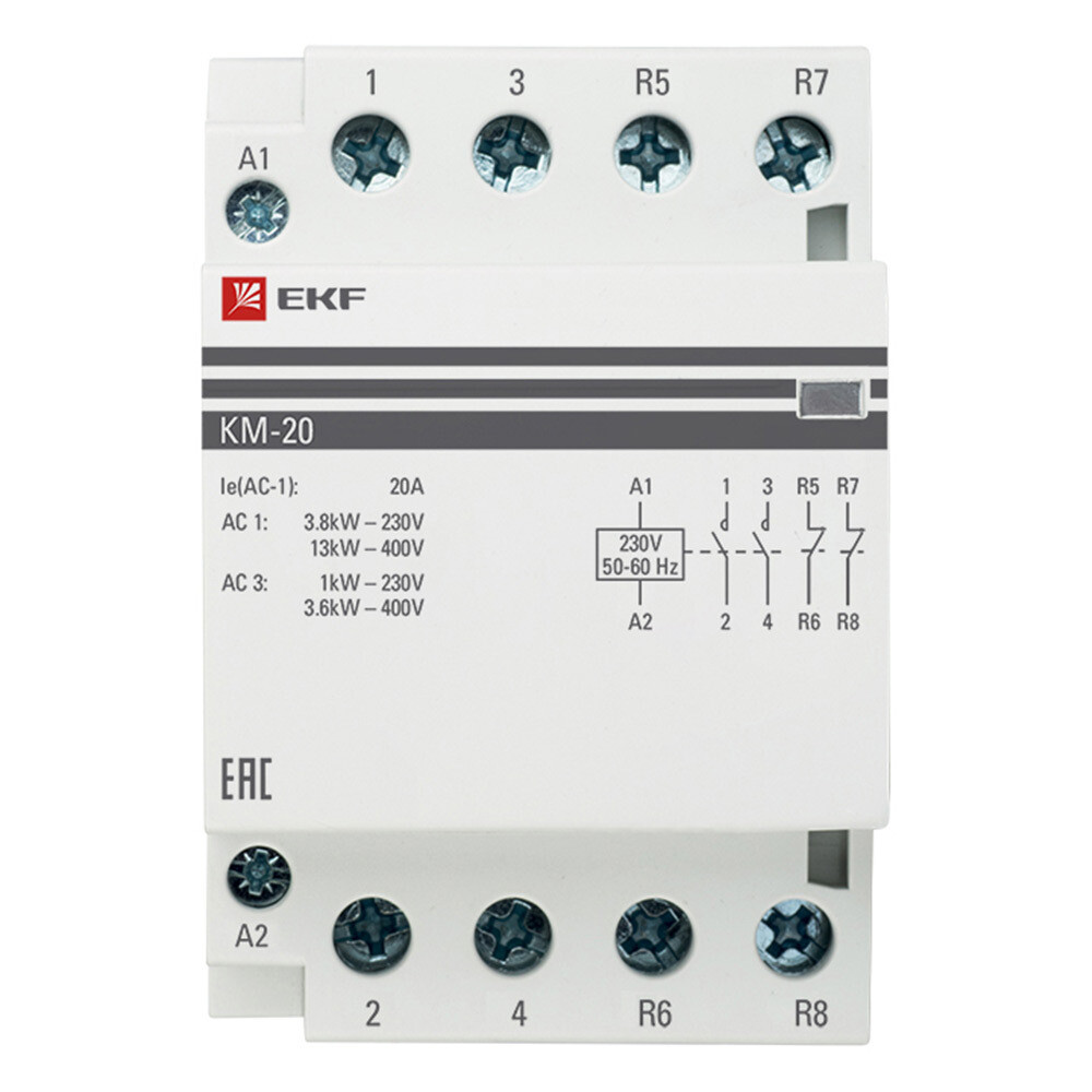 Контактор модульный EKF PROxima КМ 230 В 20 А тип AC 2НО+2НЗ (km-3-20-22)