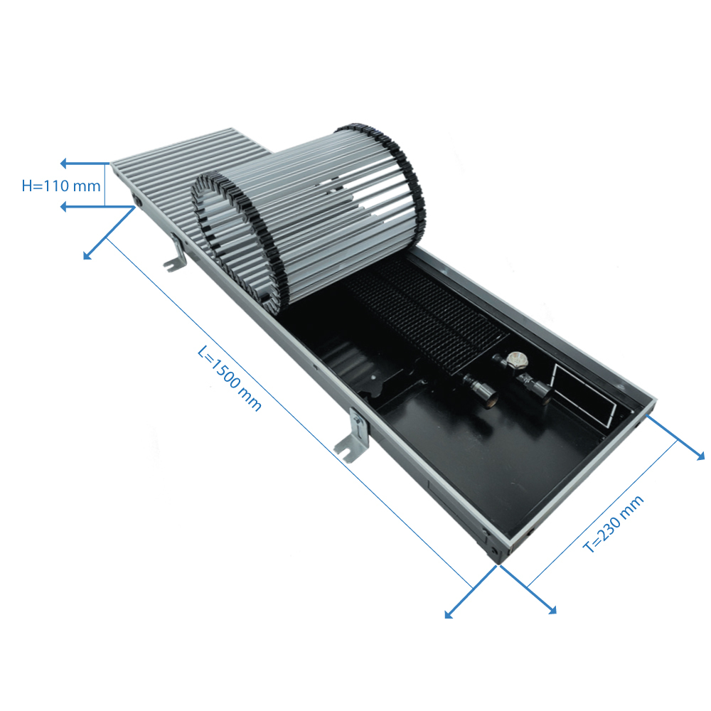 Конвектор внутрипольный Gekon Eco с 1 теплообменником 1500х230х110 мм боковое подключение