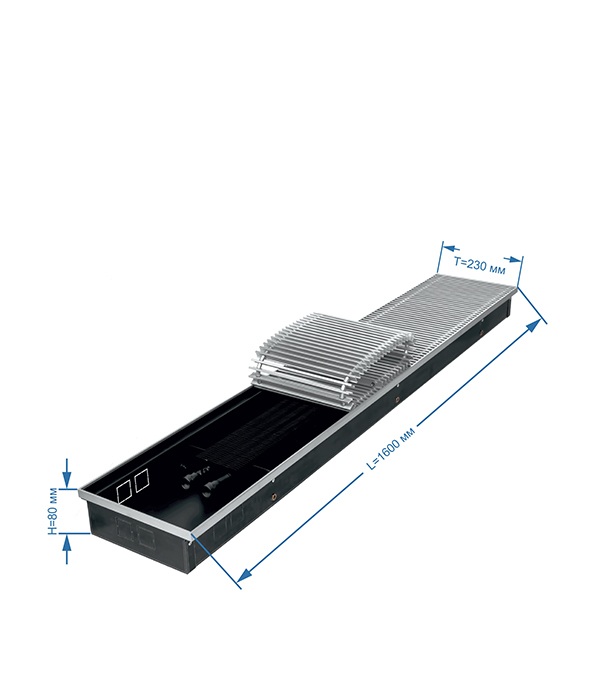 Конвектор внутрипольный Gekon Eco с 1 теплообменником 1600х230х80 мм боковое/нижнее подключение
