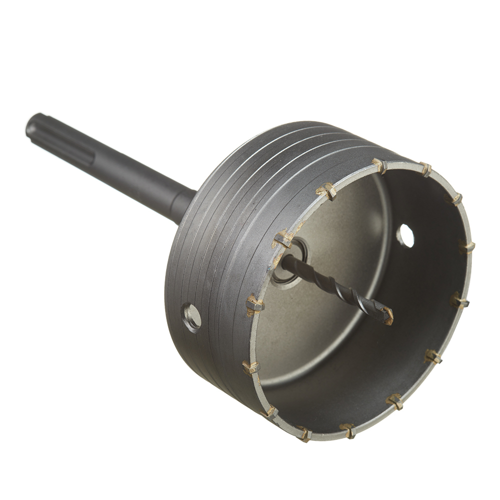 Предназначена для перфораторов с системой крепления SDS-MAX. Оснастка применяется для сверления отверстий в бетоне, кирпиче и камне. Державка и сверло поставляется в комплекте с коронкой. При необходимости возможно сверление сквозных отверстий под сантехнические и вентиляционные трубы, периодически вынимая керн. В случае сверления в армированном бетоне используйте алмазную коронку в неударном режиме.