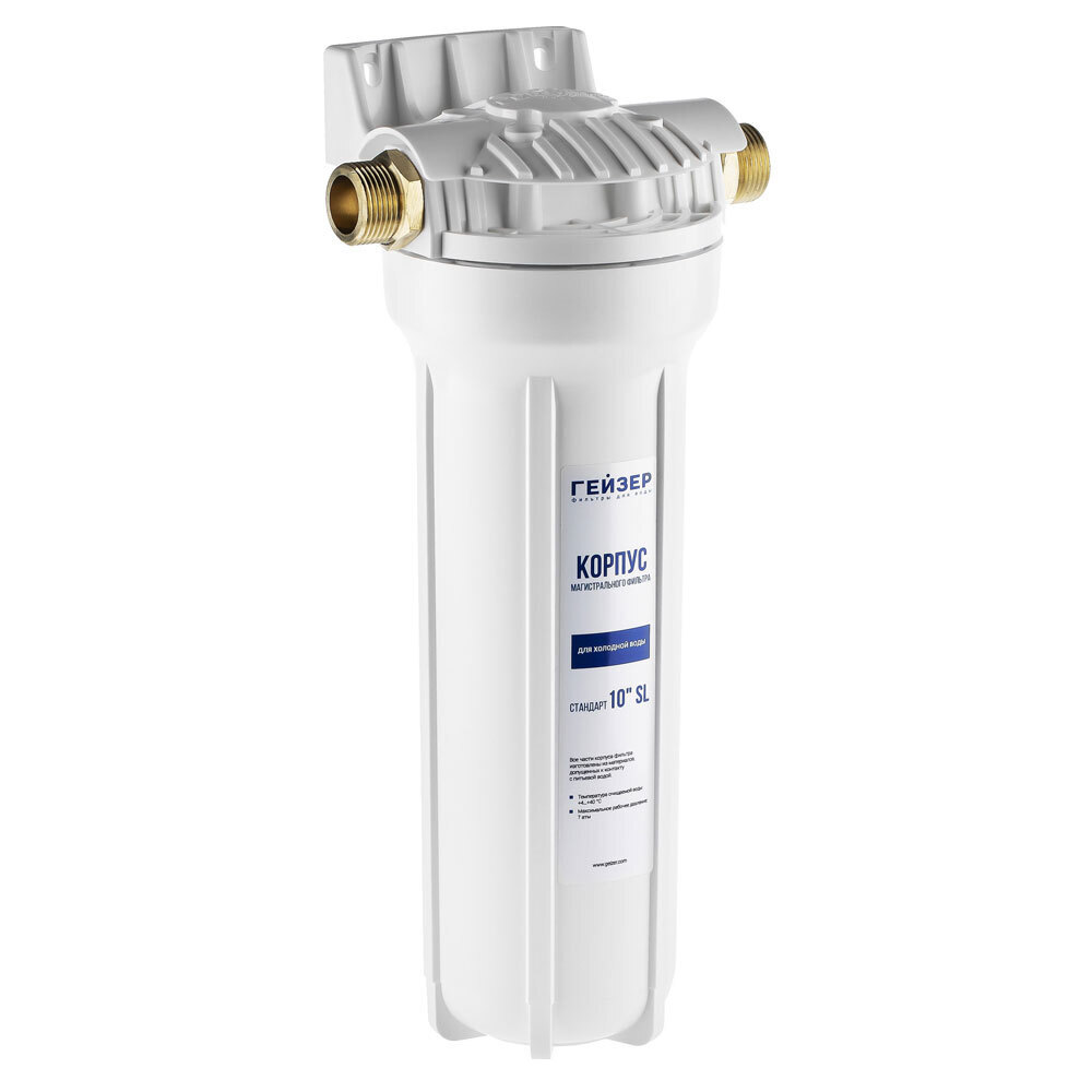 Корпус фильтра Гейзер для холодной воды пластик 10SL 3/4 НР(ш) х 3/4 НР(ш) белый