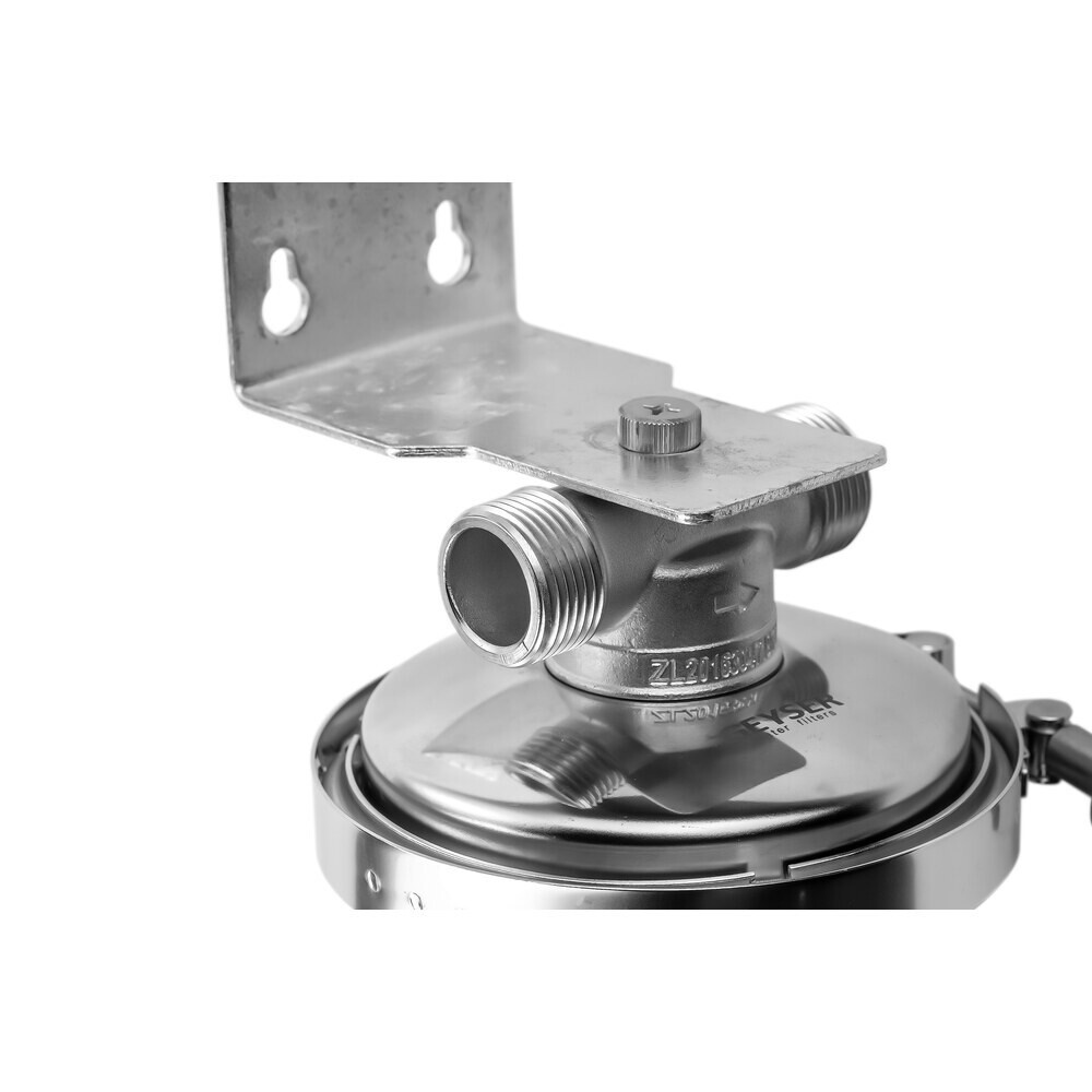 Корпус фильтра Гейзер Премьер для холодной и горячей воды нержавеющая сталь 10BB 1 НР(ш) х 1 НР(ш) серебро