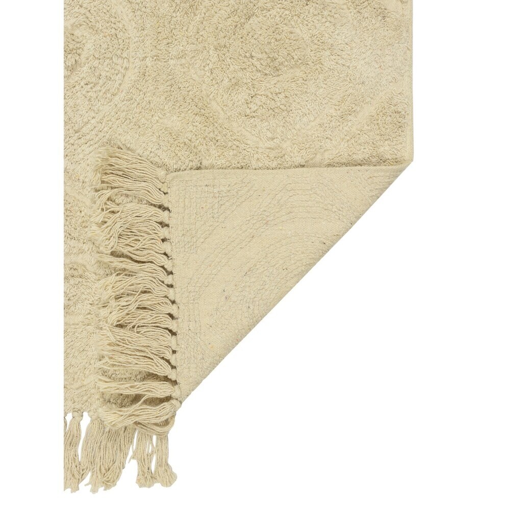 Мягкий коврик для ванной комнаты изготовлен из хлопка, нижняя сторона имеет противоскользящее напыление. Прекрасно впитывает влагу и быстро высыхает. Размер 50х80 см. Две короткие стороны имеют текстильные кисточки.