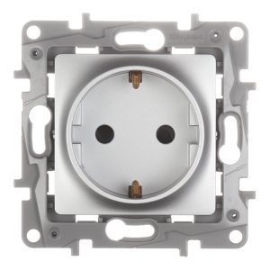 Розетка Legrand Etika встраиваемая алюминий со шторками (672422)