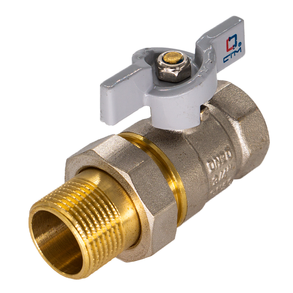 Кран шаровой латунный СТМ Стандарт 1 ВР(г) х 1 НР(ш) бабочка с накидной гайкой прямой (CWAFM001)