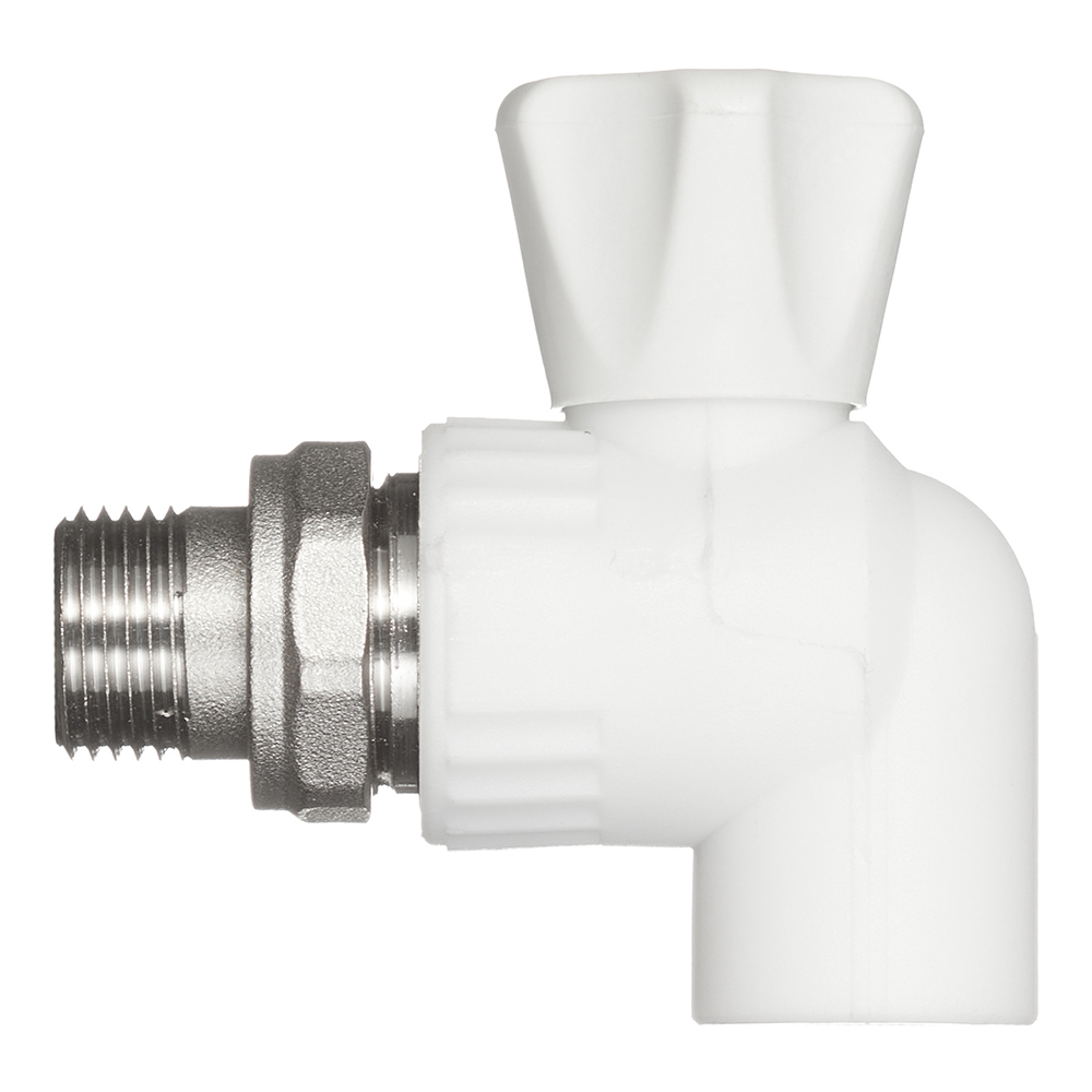 Кран шаровой полипропиленовый Valfex 20 мм х 1/2 НР(ш) с американкой угловой (10148020П)