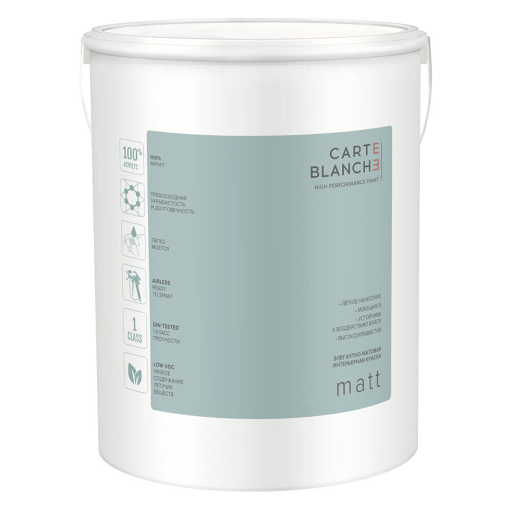 Краска элегантно-матовая интерьерная Carte Blanche Matt база. Образует глубокоматовое покрытие, стойкое к воздействию моющих и дезинфицирующих (5 %-ному раствору Хлорамина Б) средств, и обладающее высокой стойкостью к влажному истиранию (класс 1 по DIN EN 13300). База А характеризуется высокой степенью белизны.