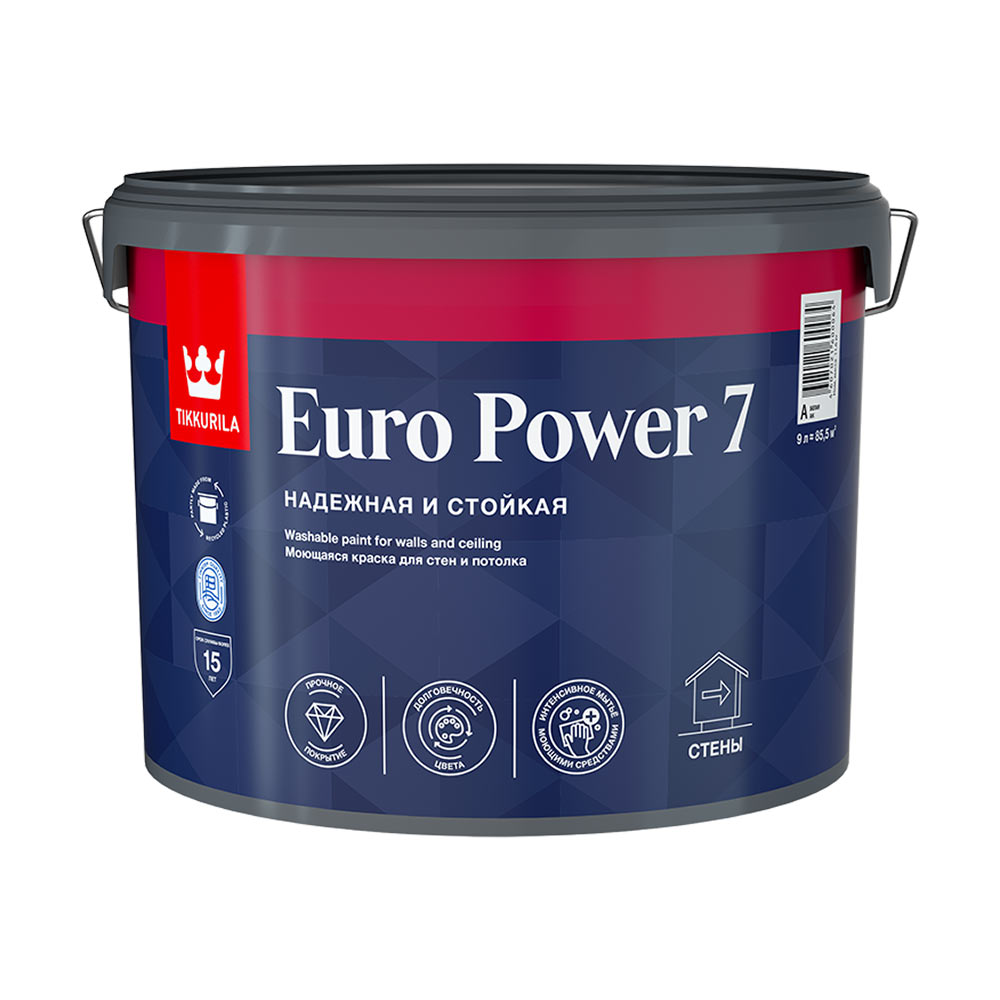 Краска моющаяся Tikkurila/Tikkivala Euro Power 7 база А белая 9 л