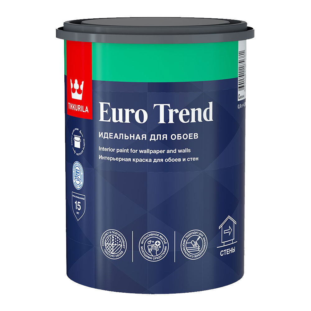 Краска моющаяся Tikkurila/Tikkivala Euro Trend база C бесцветная 0,9 л