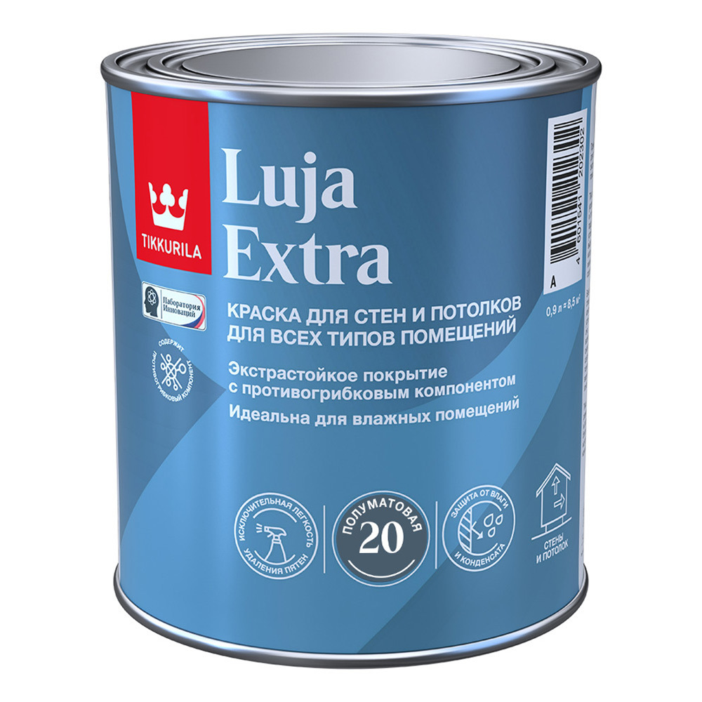 Краска моющаяся Tikkurila/Tikkivala Luja Extra полуматовая база А белая 0,9 л