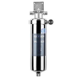 Корпус фильтра Гейзер Премьер для холодной и горячей воды нержавеющая сталь 10SL 1/2 НР(ш) х 1/2 НР(ш) серебро