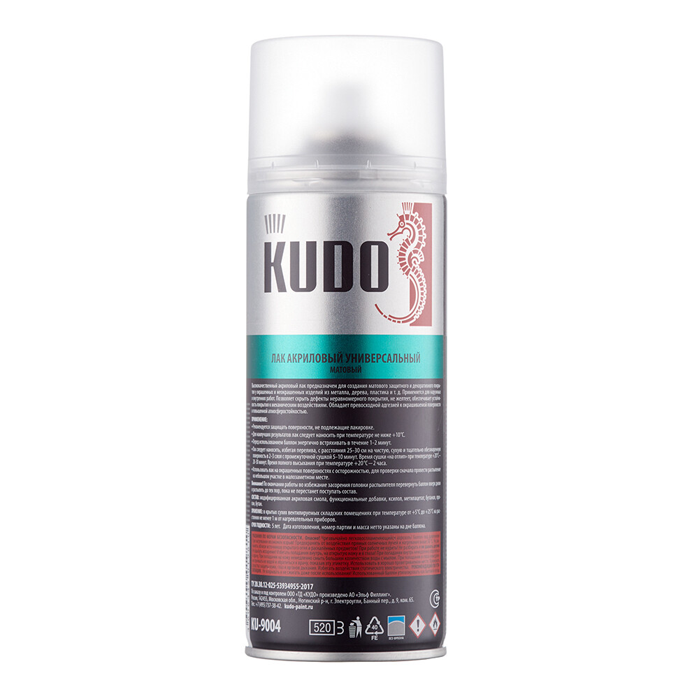 Лак аэрозольный акриловый Kudo Arte бесцветный 520 мл матовый