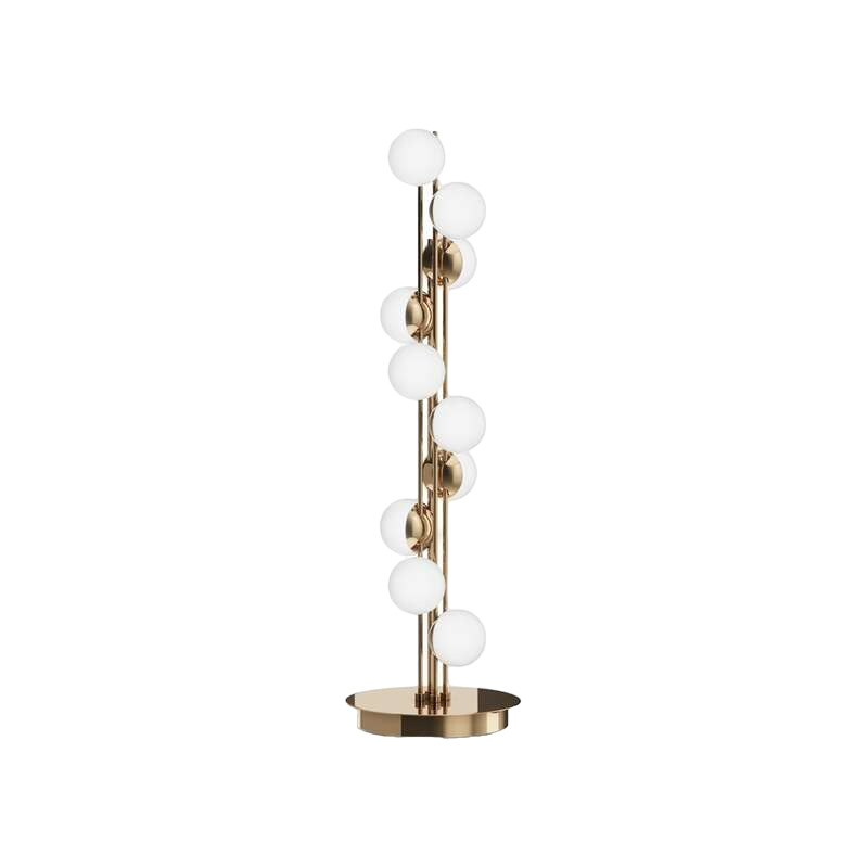 Обеспечивает максимально равномерное и яркое освещение пространства. Металлическая золотая арматура и матово-белые миниатюрные плафоны с легкостью дополнят любую палитру, а представленные в коллекции подвесная люстра и бра станут готовым ансамблем для освещения гостиной, спальни, прихожей.