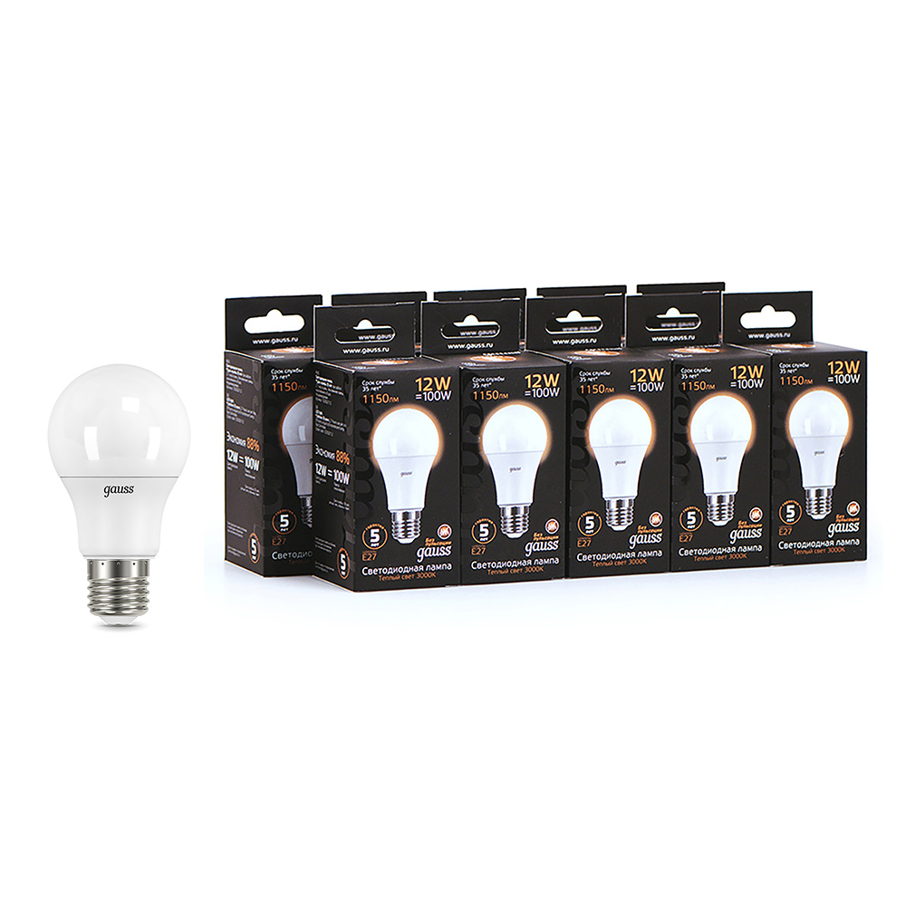 Лампа светодиодная Gauss E27 3000К 12 Вт 1150 Лм 150-265 В груша A60 матовая (10 шт.)