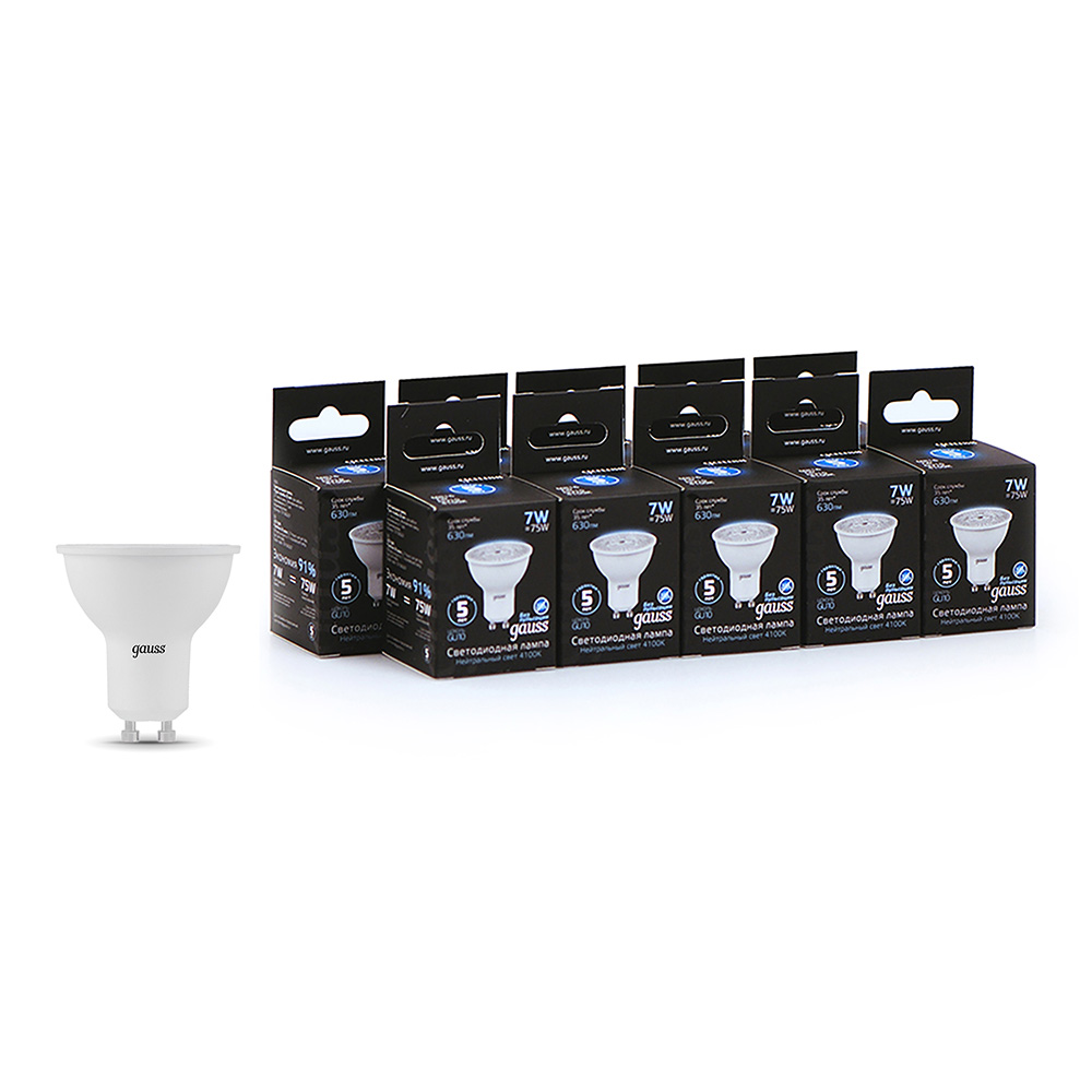 Лампа светодиодная Gauss GU10 4100К 7 Вт 630 Лм 150-265 В рефлектор MR16 матовая (10 шт.)