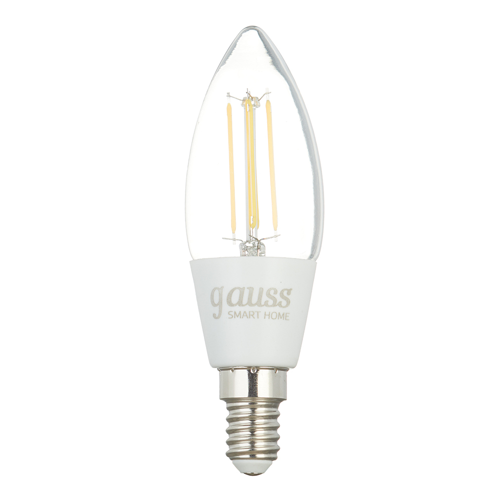 Главная / Каталог / Электрика / Умный дом / Системы освещения / Лампы умные / Лампа умная Gauss Smart Home филаментная диммируемая E14 4,5 Вт теплый/холодный 2000-2700 К IP20 свеча