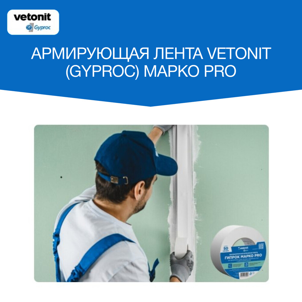 Лента армирующая Марко Pro – высокопрочная бумажная лента для армирования стыков гипсовых строительных листов с любыми видами кромок. Длина – 50 м. Предотвращает трещины на стыках гипсовых плит за счет увеличенной прочности на разрыв. Изготовлена из специальной бумаги высокой плотности с распределенным, разнонаправленным целлюлозным волокном.